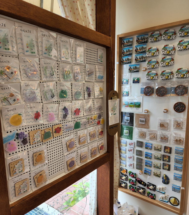 상점톡톡은 거제를 기념할 수 있는 상품 뿐만아니라, 아기자기한 소품까지 함께 팔고 있었습니다. 사장님의 센스가 빛나는 곳이 한두군데가 아니었습니다. 저는 기념품 중에서 마그네틱을 아주 좋아합니다. 이번에도 역시 마그네틱과 함께 거제 유자로 만든 초콜릿, 굴통조림을 구매했습니다. 여기서 팔고있는 소품들은 사장님이 직접 작가님과 컨택해서 아이디를 가지고 만드는 거라고 합니다. 거제도를 대표하는 마그네틱이 너무 많아서 다 사고 싶었지만, 다음에 들러서 또 살 수있게 아껴놨습니다.