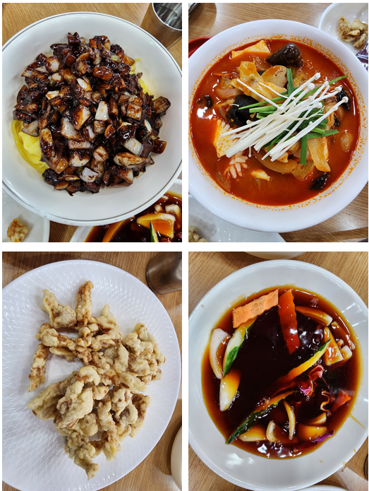 실제 주문했던 음식 사진입니다. 왼쪽 상단부터 간짜장, 해물짬뽕, 탕수육 소짜입니다. 탕수육 소짜는 양이 작아 보이는데, 딱 곁들이기 좋았던 정도입니다.