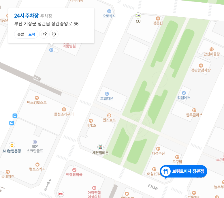 브뤼트피자 정관점 지하에 주차장이 있는데, 주말에는 주차타워를 운영하지 않아서 6~7대 정도밖에 주차할 수 없었습니다. 게다가 근처에 식당가가 많아 길에 주차되어 있는 차들이 많아 주차하기가 어려웠습니다. 저는 시간을 아끼기 위해 유료주차장에 주차를 하였습니다. 30분에 1,000원으로 비교적 저렴하였지만 30분 단위로 계산되는 단점이 있었습니다. 시간을 확인하셔서 1시간 안으로 출차를 할 경우 2,000원의 주차요금이 발생합니다. 아래 주차장 위치 공유드립니다.