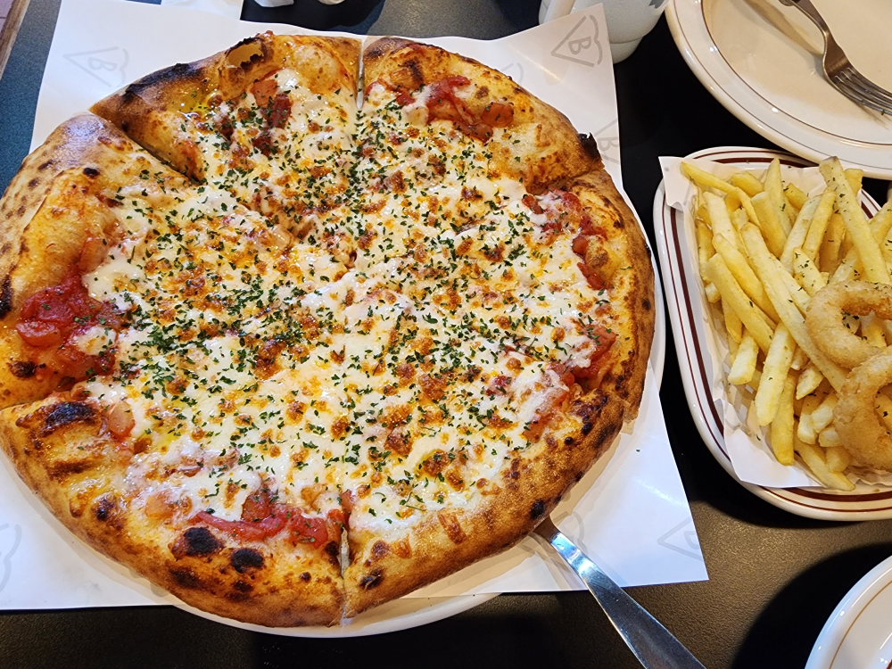 저희는 어른2명 6세, 9세 아이 2명으로 치즈피자, 치킨윙&스틱, 감자튀김과 어니언링을 먼저 주문해서 먹고 모자란 감이 있어 토마토푸실리를 먹었습니다. 피자가 너무 맛이 있고, 특히 토마토푸실리도 맛이 좋았습니다. 다음번에도 꼭 다시 오고 싶은 곳이라고 말씀드리고 싶습니다.