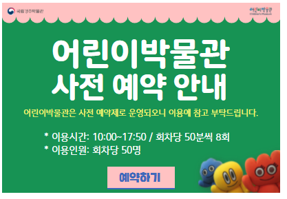 국립경주박물관 내에 있는 어린이박물관이다. 역사에 대해 어린이의 눈높이에 맞춰 체험할 수 있게 되어있다. 사전 예약이 필수이고 생각보다 인기가 많아서 경주 여행 계획이 있다면 미리미리 신청하길 바란다. 어린이박물관은 어르신들이 근무하고 계시고 입장을 도와주신다.
