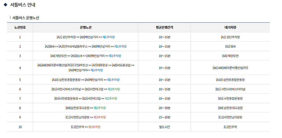 사천 에어쇼 셔틀버스 및 임시 주차장