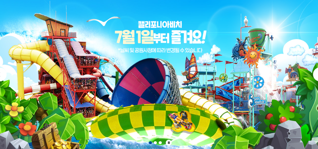 홈페이지 기준으로 2023년 경주월드 캘리포니아비치는 7월 1일에 개장 예정입니다. 여름의 시작과 함께 경남, 부산, 대구 등에서 많은 분들이 방문할 걸로 예상됩니다. 장유 롯데워터파크와 함께 대표 관광지라고 할 수 있습니다. 아래는 홈페이지에 광고 추가하였습니다.