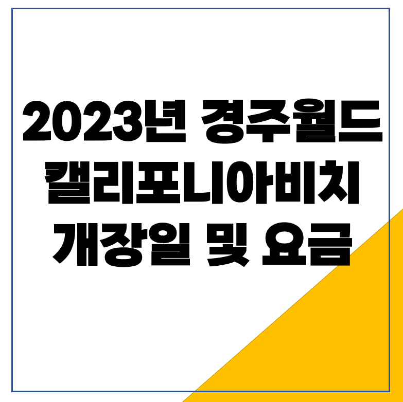 2023년 경주월드 캘리포니아비치가 여름을 맞아 다시 오픈합니다. 홈페이지를 통해 개장일 및 요금을 알아보았습니다. 작년과 다른 내용은 골드시즌 1/2를 구분하여 할인율에 차등을 뒀다는 점입니다. 우선 경주월드 캘리포니아비치 개장일, 위치 및 연락처 요금을 차례대로 알아보도록 하겠습니다.
